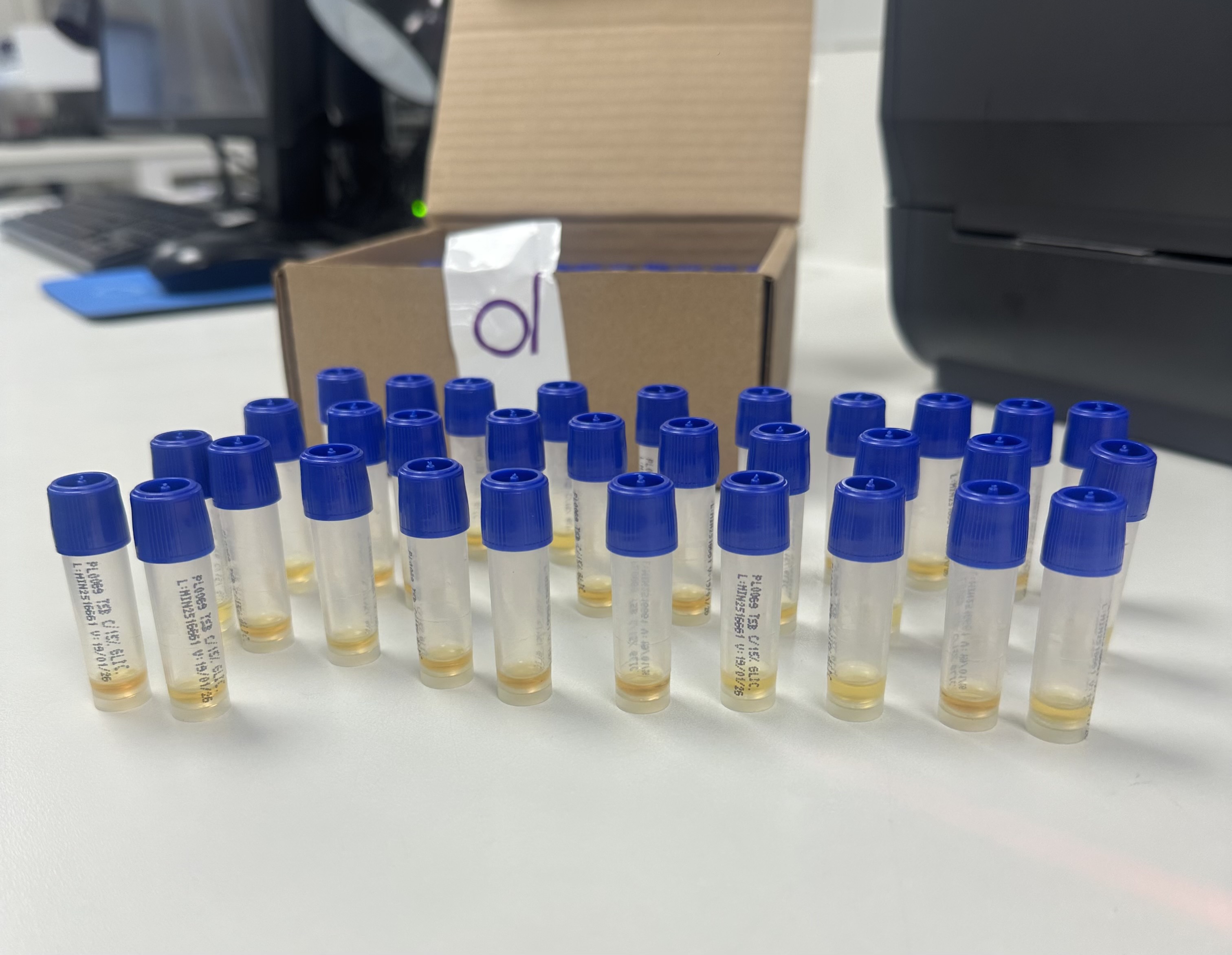 | Obs.: | No momento da abertura da caixa verificamos que 36 criotubos estavam com volume abaixo do esperado. |