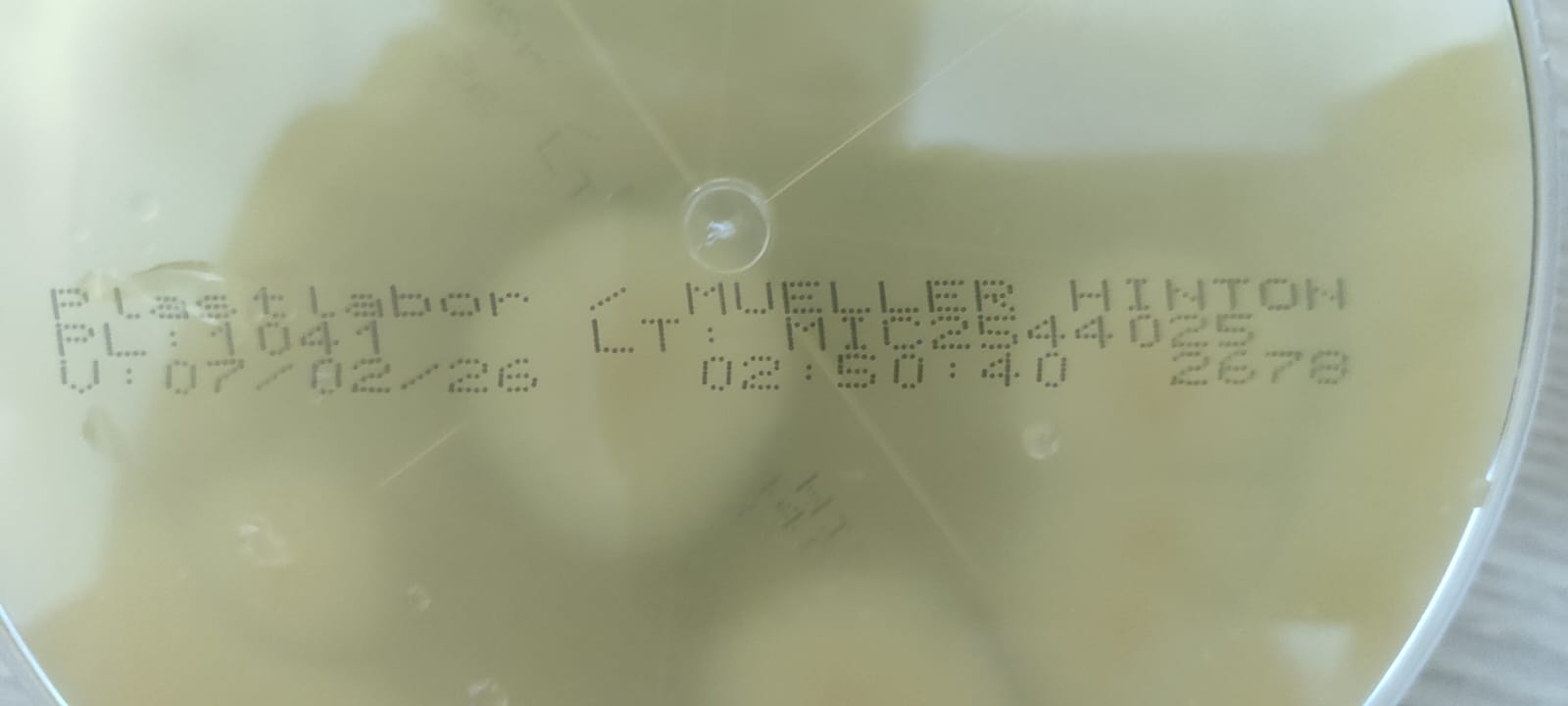 | Obs.: | a cliente relatou que Um pacote de Mueller Hinton estava com contaminação. |