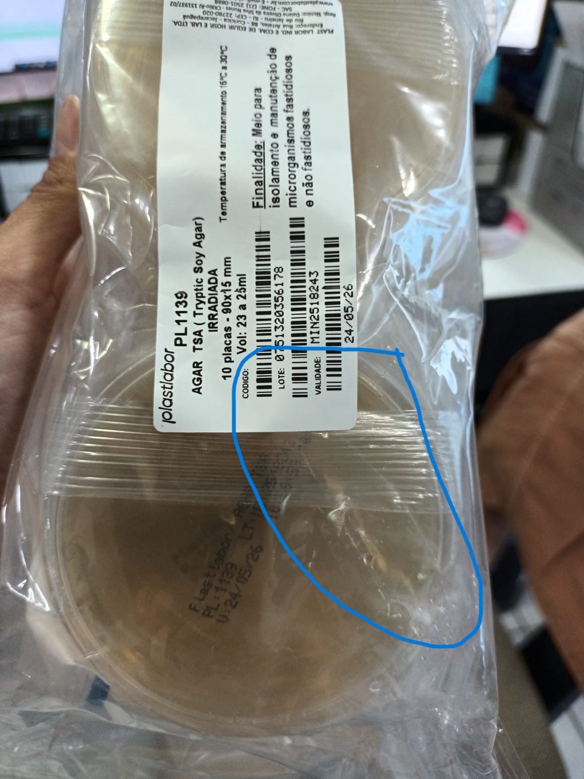 | Obs.: | Recebi o Agar TSA e 1 pacote veio com placa quebrada. Gostaria de solicitar a troca, pois, não é possível utilizar a placa quebrada. |
