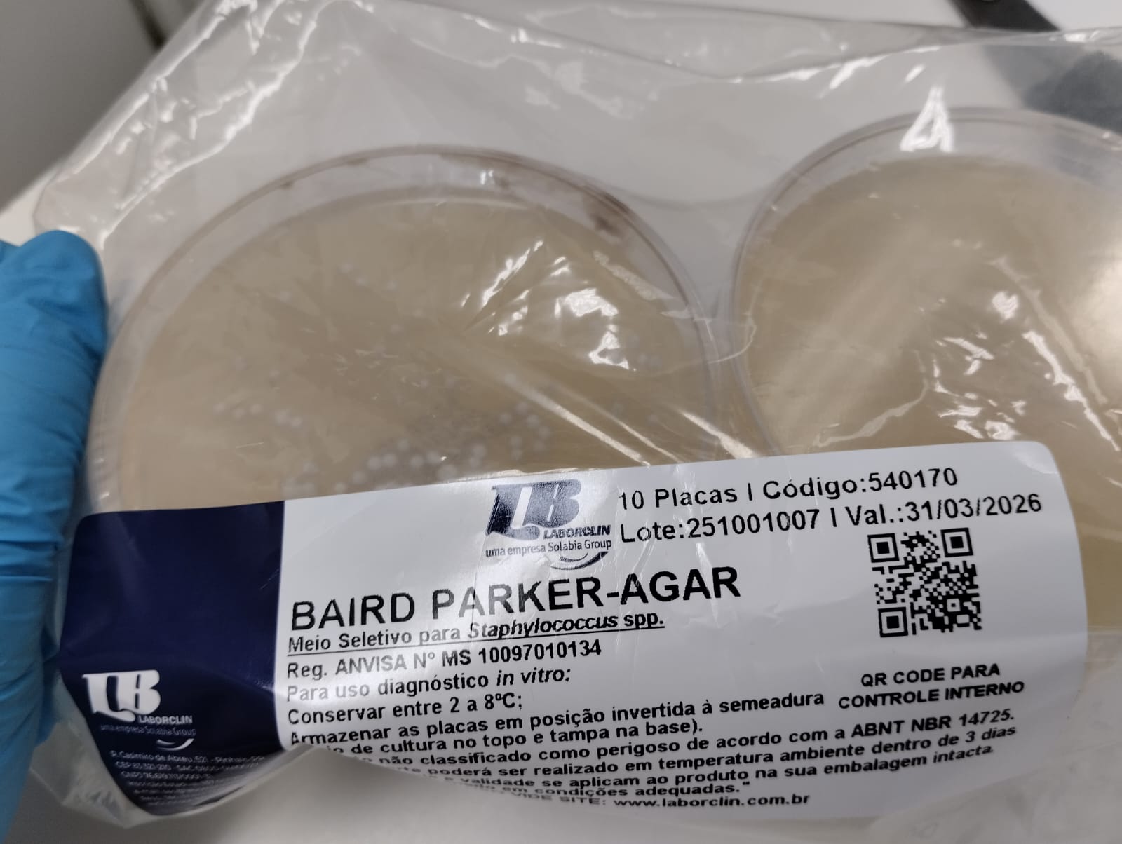 | Obs.: | Presença de contaminação na placa baird parker da laborclin (cod: 540170). Ao abrir as caixas de isopor no recebimento, notamos a presença da contaminação na embalagem de placas baird parker ainda lacrada, conforme imagens anexadas. |