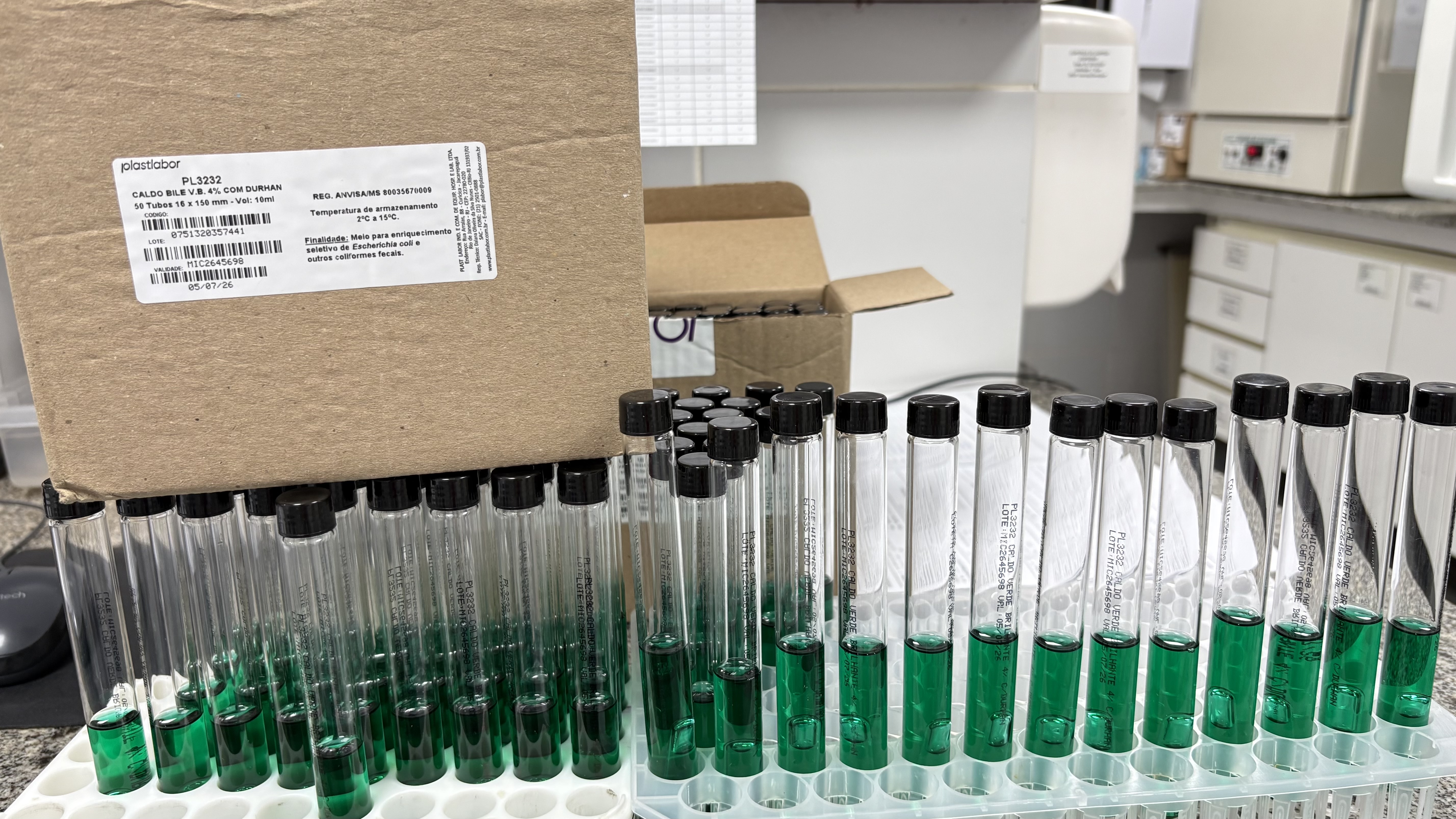 | Obs.: | Após abertura da caixa de caldo bile V.B 4% o indicador de Durhan já estavam positivos (com formação de gás). Aberto duas caixas do mesmo lote citado, totalizando 64 tubos com indicador comprometido. |