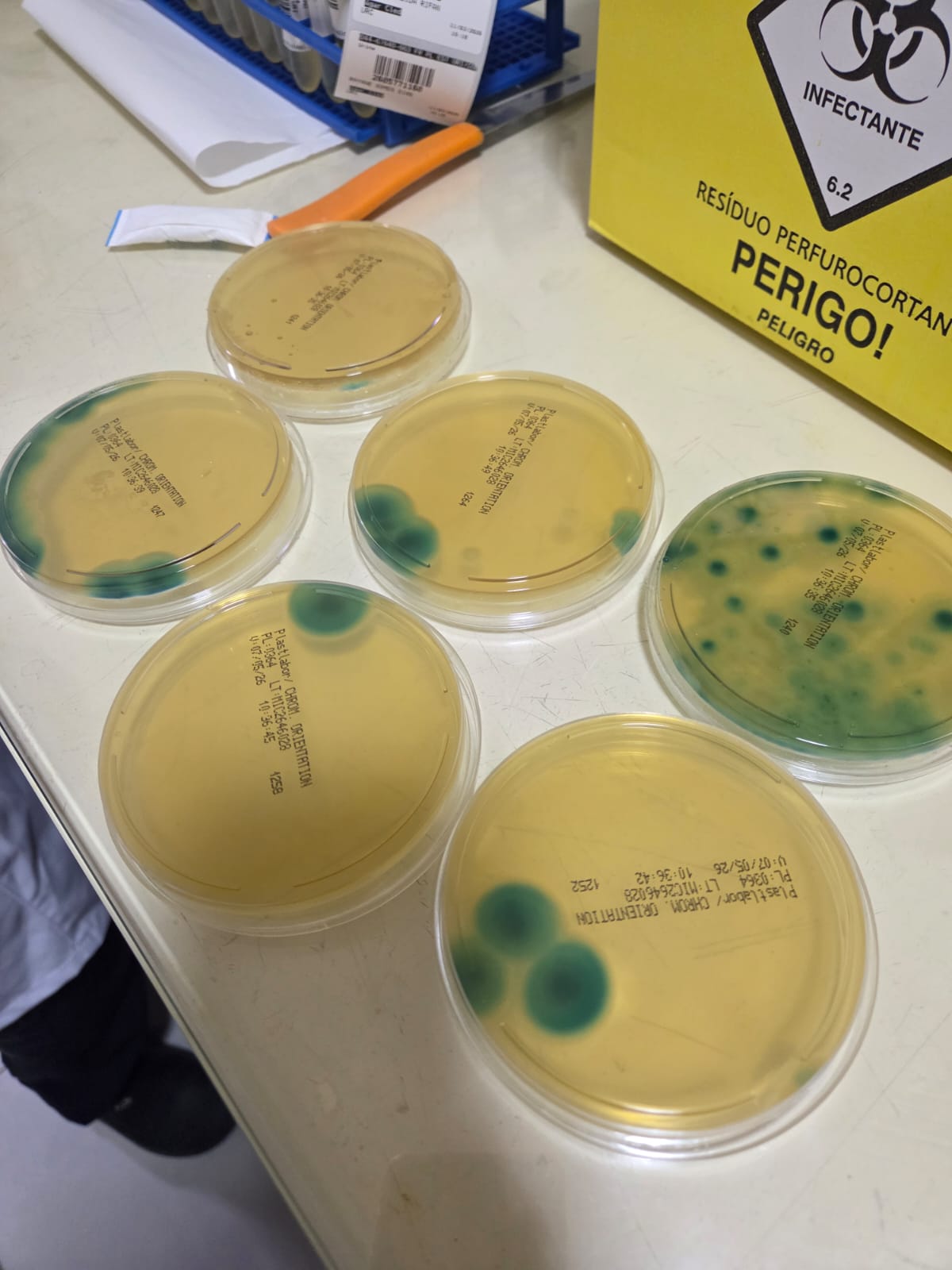 | Obs.: | Abrimos um pacote de CHROMagar e 6 placas estavam com contaminação |