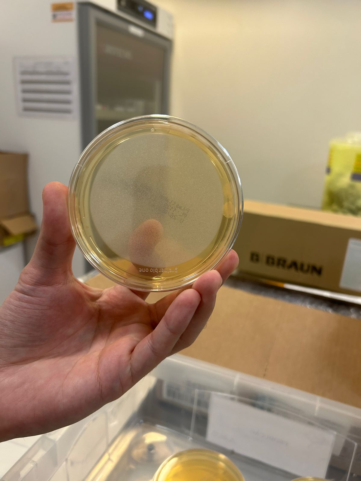 | Obs.: | Encontrei placas de Petri contaminadas com colônias de bactérias, no momento da utilização para revalidação da higiene de mãos da sala limpa da AMO Oeste. |